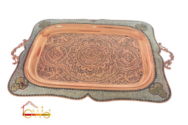 سرویس ده تکه تنگ و لیوان مسی خاتم کاری میناکاری